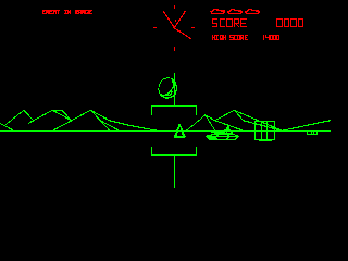 1980 - o jogo "BattleZone", demonstrando o primeiro ambiente totalmente a três dimensões, impressiona o exército americano de tal forma que este contrata a empresa que fabricou o jogo (Atari) para construir versões adaptadas para treino de combate em tanques. (Atari) |
